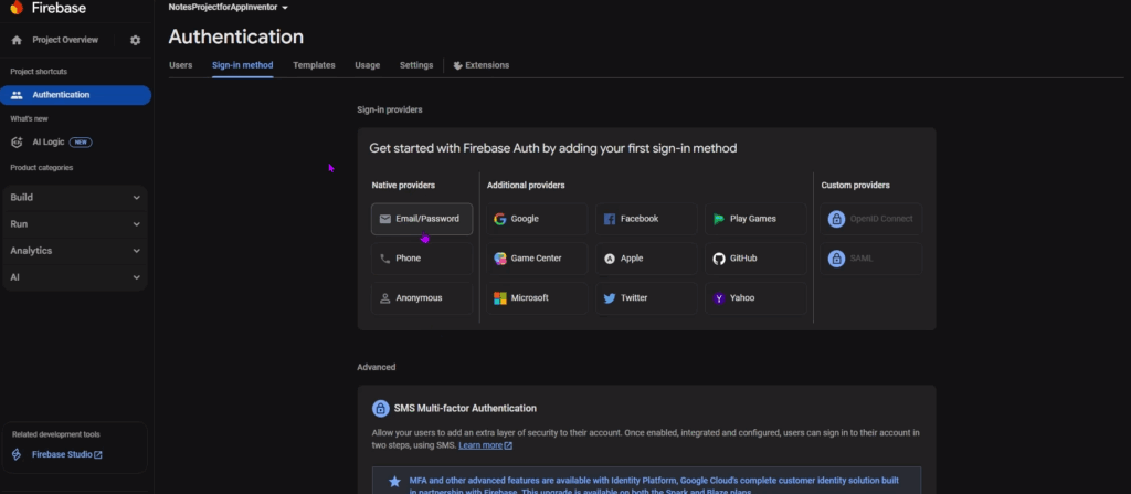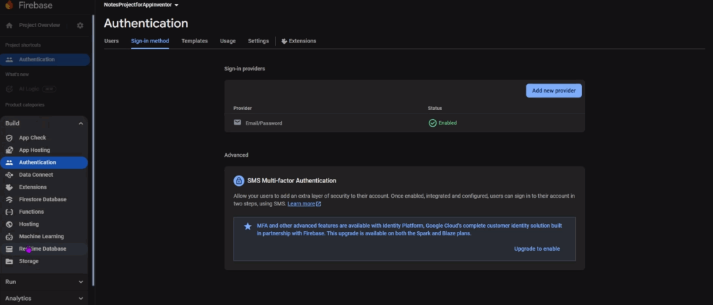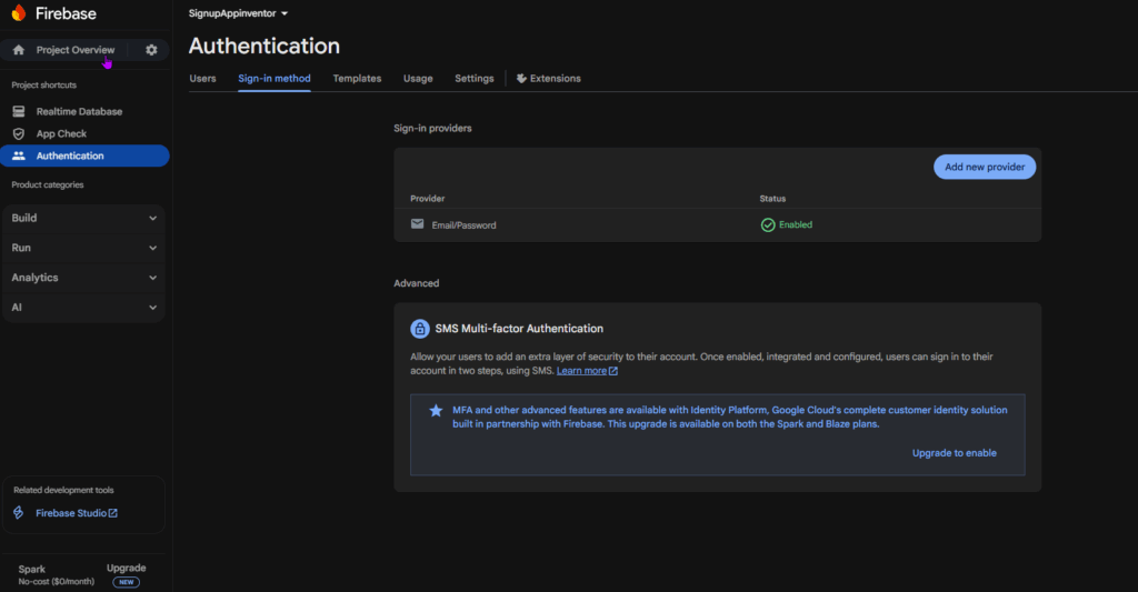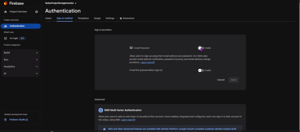 It will take you to another page. Enable only Email/Password sign-in here.