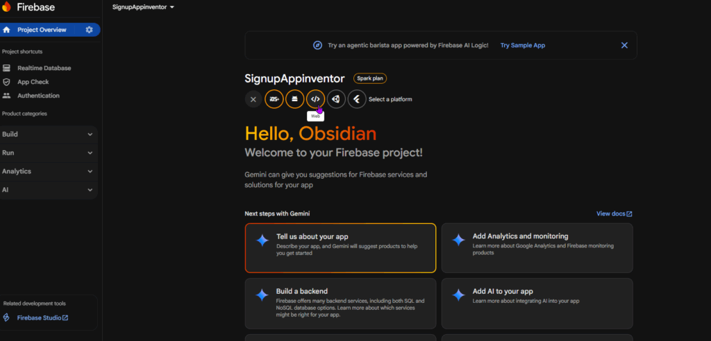 Paste it where you also pasted the URL for the Firebase Realtime Database. Keep your Web API key secure. Don’t use my API key as it will not work; I have already deleted this project.