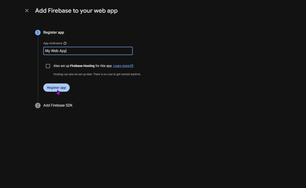 Give some name to your web app and click on Register app button.
